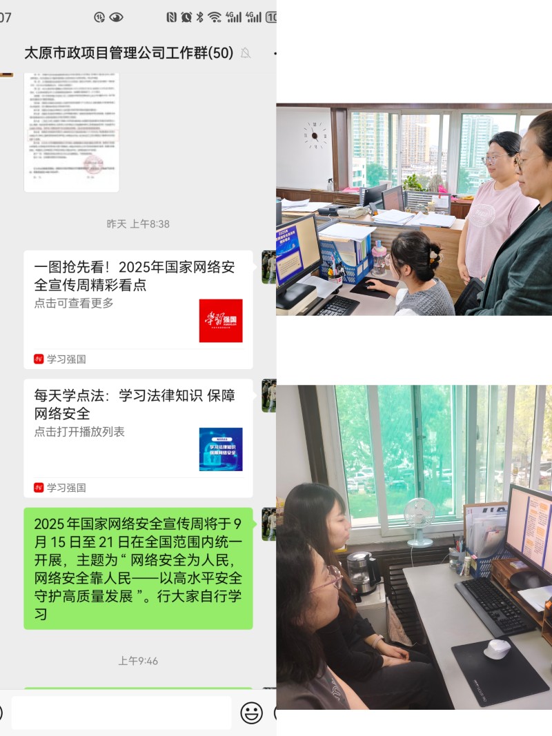 9月15日至21日,項(xiàng)目管理公司黨支部開展“學(xué)法用法強(qiáng)本領(lǐng) 同筑安全防護(hù)墻”專題活動(dòng)。此次活動(dòng)聚焦《網(wǎng)絡(luò)安全法》《數(shù)據(jù)安全法》《個(gè)人信息保護(hù)法》等核心法律條規(guī),結(jié)合生活中常見的網(wǎng)絡(luò)詐騙、信息泄露等案例進(jìn)行解讀與分析,引導(dǎo)黨員干部把所思所學(xué)融入工作與生活,不斷增強(qiáng)辨識與抵御網(wǎng)絡(luò)風(fēng)險(xiǎn)的能力,爭當(dāng)網(wǎng)絡(luò)空間清朗環(huán)境的維護(hù)者、踐行者。